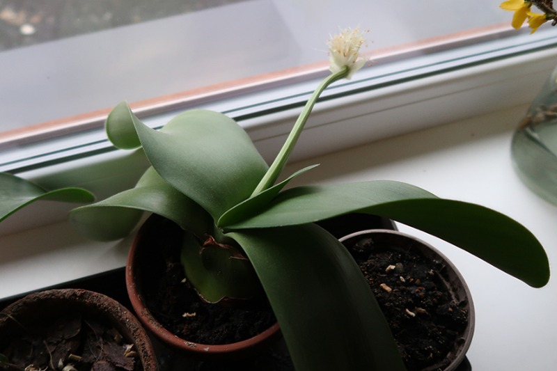 - Identifikace pokojové rostliny se širokými listy a bílými květy - fotografie ( BĚLOKVĚT BĚLOKVĚTÝ, Haemanthus albiflos)