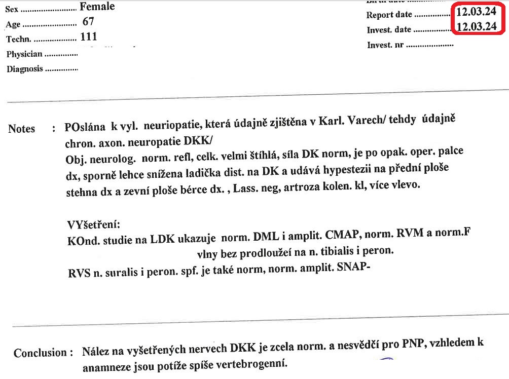 Lékařské zprávy - v jedné je žeam polyneuropatii, v druhé že nám!!! Rozdíl 4 let. Jak se cítím?