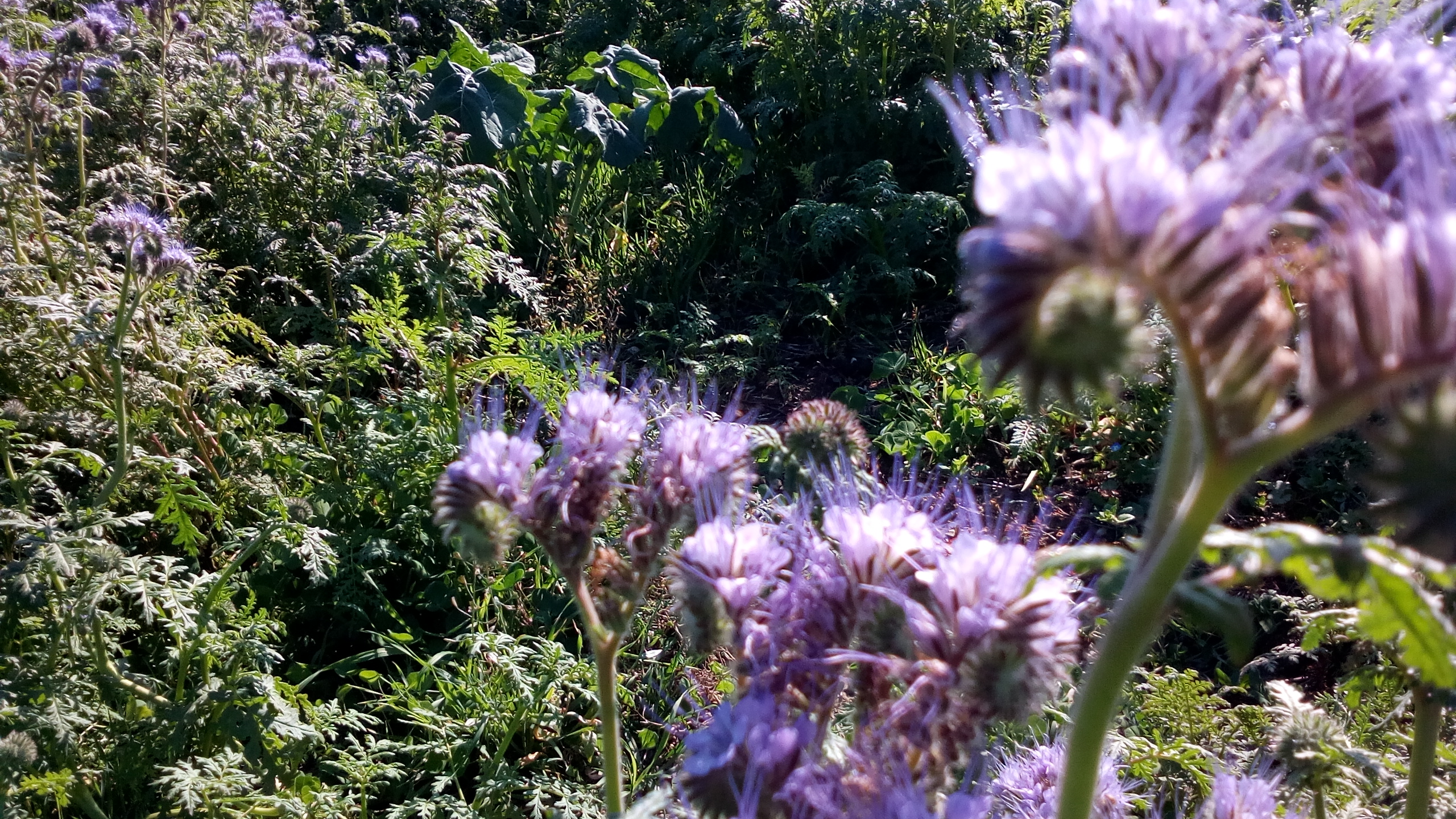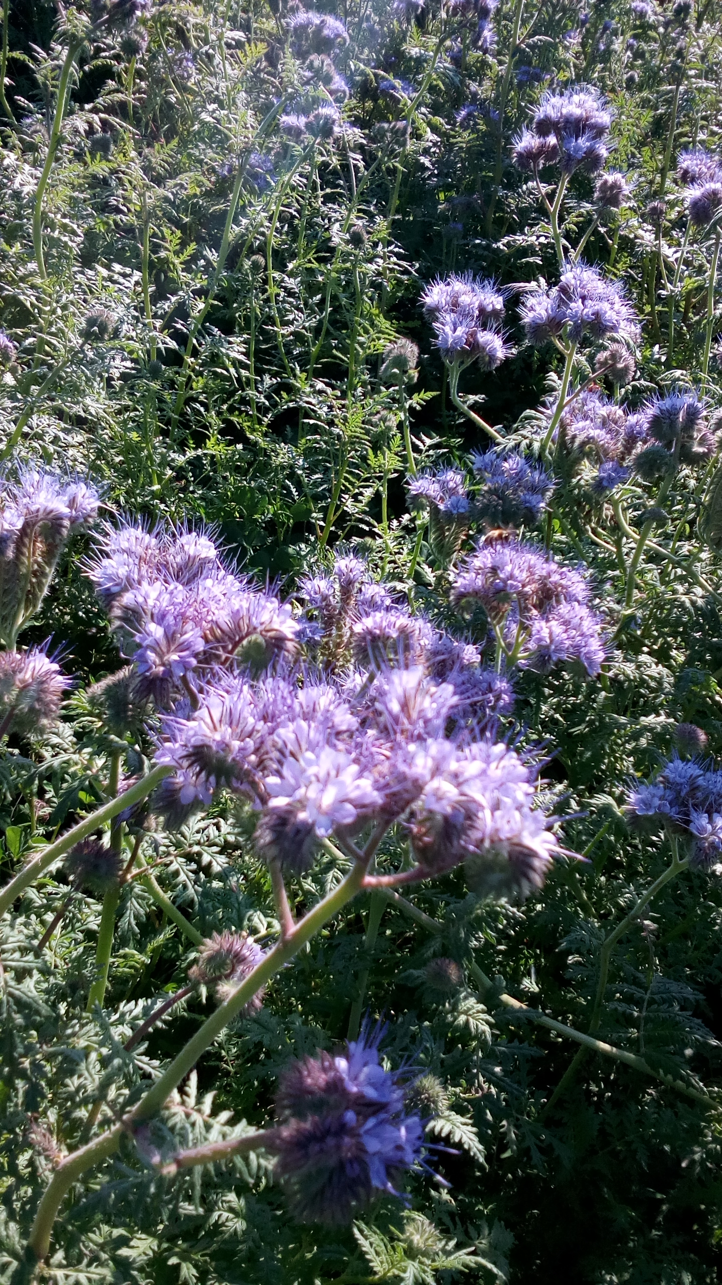 Neznámá voňavá rostlina s růžovými květy a dlouhými bliznami rostoucí na poli - svazenka vratičolistá (Phacelia tanacetifolia)