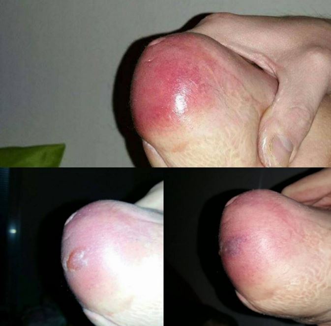 Bolí ho to víc než dost. Už měl i puchýře na tom.