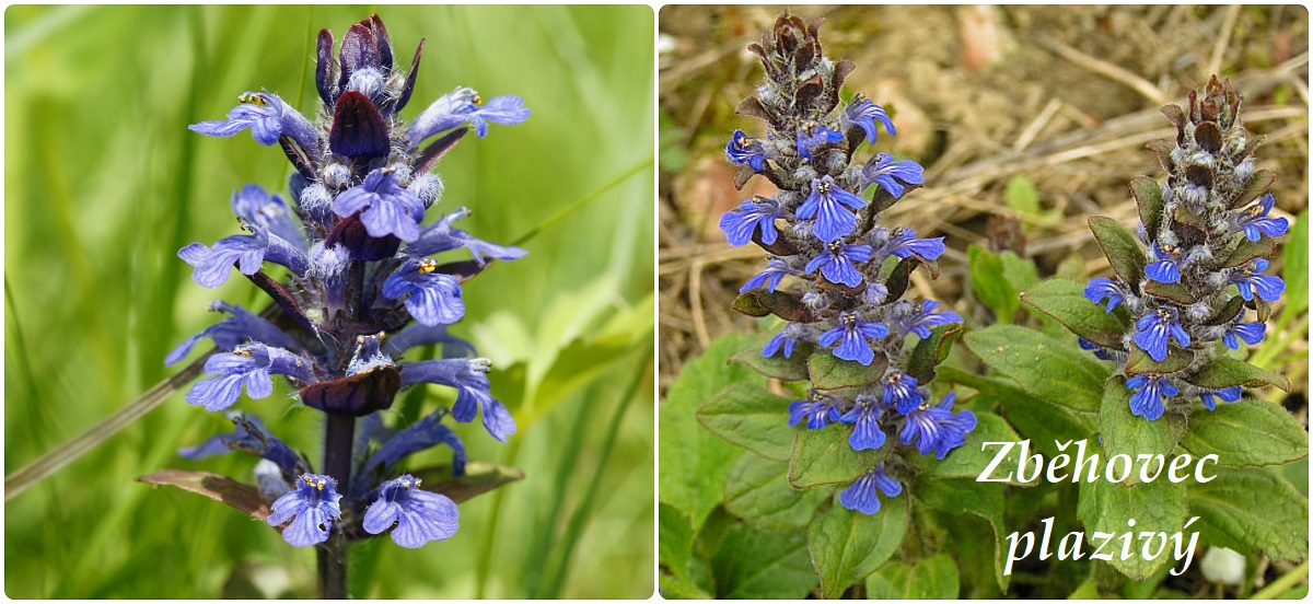 Zběhovec plazivý (latinsky ajuga reptans). Na pasekách často rostou bohaté porosty krásně rozkvetlých zběhovců. Zběhovce však lze objevit i v lesích a na loukách, kde jsou opravdovou krásnou modrou ozdobou svého okolí. Zběhovce si člověk musí oblíbit již jen kvůli jeho kráse, proto někdy bývá v okrasných zahrádkách. Rostlina však má také bohatý obsah cenných účinných látek, tím se řadí mezi hotové skvosty naší přírody.